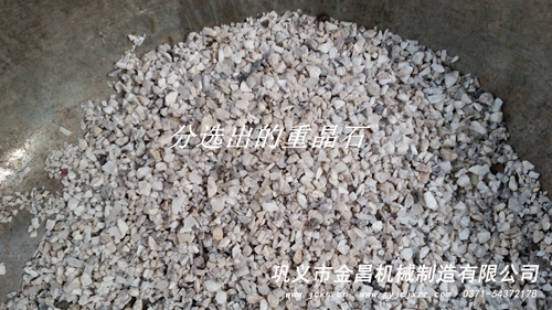 利用重力選礦的方法就可以解決這個問題,并且有較好的效果,因為重晶石的比重在4.2左右,螢石的比重在3.6左右,方解石的比較最輕,三者有一定的比重差,重選就是根據(jù)這個原理進行分選的,在所有重選設(shè)備中,跳汰機是比較常用的一種設(shè)備,可能有些人要問了,我就是用的跳汰機,可是為什么我就是選不出來呢,那么您操作的問題,因為重晶石的比重和螢石的比重相差不是很遠,利用傳統(tǒng)跳汰機操作法是很難有效果的,如果一個廠家沒有豐富的經(jīng)驗是很難成功的,下邊是金昌機械制造有限公司為湖北客戶做的重晶石、螢石、方解石分選實驗,實驗效果還是非常明顯的。