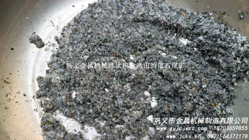 通過觀察礦石,我們可以發(fā)現(xiàn),在這種顆粒狀態(tài)下,螢石和廢石已經(jīng)單體解離, 這就為跳汰機重選創(chuàng)造了有利的條件。本身跳汰機就是利用礦石比重差進行分選的設備,螢石和廢石有一定的比重差,跳汰起來自然應有很好的效果。通過調節(jié)跳汰機各項指標,最終跳出了合格的精礦和尾礦,下邊是試驗的視頻和圖片,希望對您有所幫助。