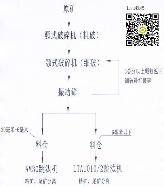 一般情況下,鉻鐵合金的嵌布粒度為30mm以下,當然也有小顆粒存在的形式,整塊冶煉渣基本在250-300mm,因此必須經(jīng)過兩次破碎,將大塊冶煉渣破碎到30以下,達到廢渣與合金顆粒基本單體解離,再進入鉻渣洗選跳汰機進行洗選,獲得高品質鉻鐵合金顆粒和固體廢渣。