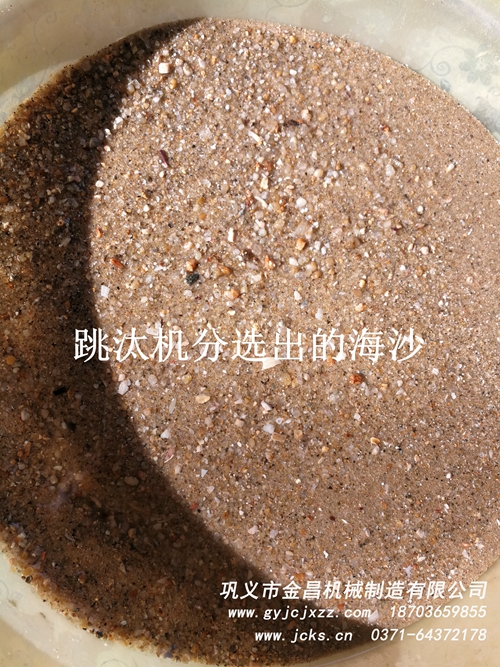 通過觀察,沙子的顆粒都是保持在一定粒度以下,并且海沙和貝殼都是分離狀態(tài),進(jìn)入跳汰機(jī)直接分選沒有問題,通過我們對跳汰機(jī)各個方面的調(diào)節(jié),最終獲得了較好的分選效果,下邊是分選出的效果圖,效果是非常明顯的,實踐證明跳汰機(jī)分選海沙中的貝殼沒有問題。